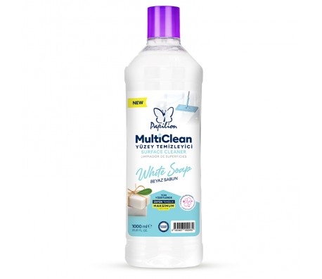 Papilion Surface Cleaner White Soap Препарат за под/повърхности 1000 мл. притежава иновативна формула с мощно действие срещу упорити замърсявания. Почиства различни видове подови настилки и повърхности, осигурявайки свежест, блясък и чистота. Остава свеж и дълготраен сапунен аромат. Супер икономичен, благодарение на своята концентрирана формула – 160 мл. от препарата се разтваря в 10 л. вода.